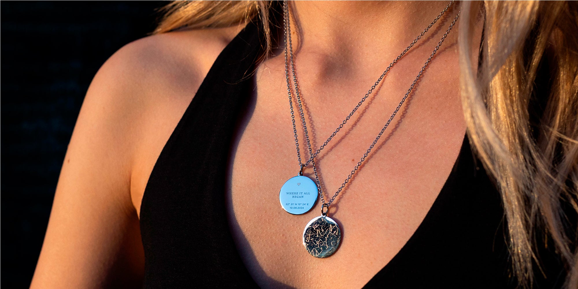 Personalisierter Sternkarten-Anhänger mit Kette aus Edelstahl in Silber – individueller Schmuck mit graviertem Sternenhimmel, perfektes Geschenk zur Erinnerung an besondere MomenteHalskette – Sternenhimmel