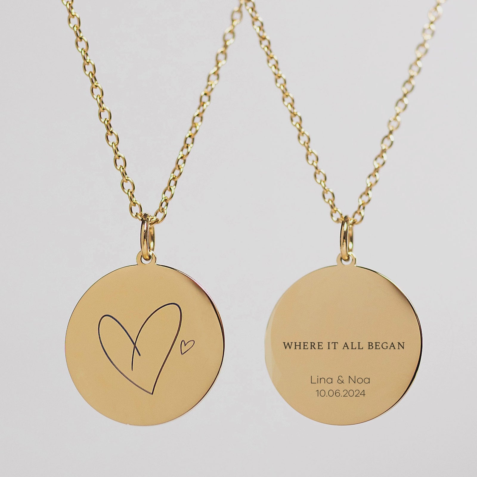 Personalisierte Halskette - wähle ein Symbol, füge eine Widmung, eure Namen und Datum hinzu. Das perfekte Geschenk zum Jahrestag.
