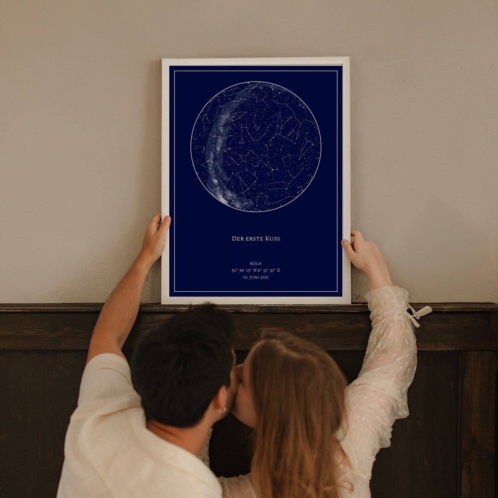 Verewigt den Moment eures ersten Kusses auf einer personalisierten Sternenkarte – unvergesslich für Paare.